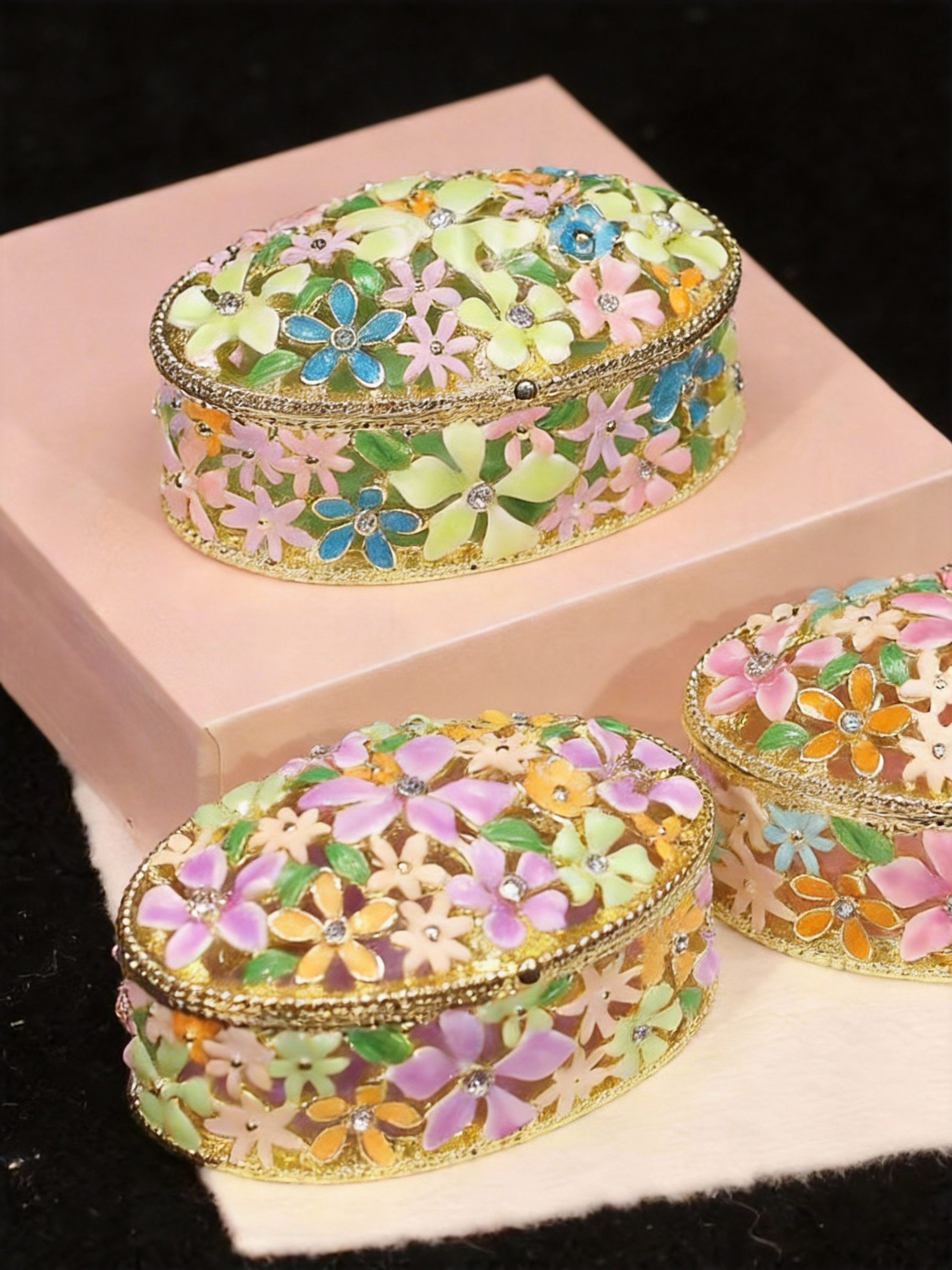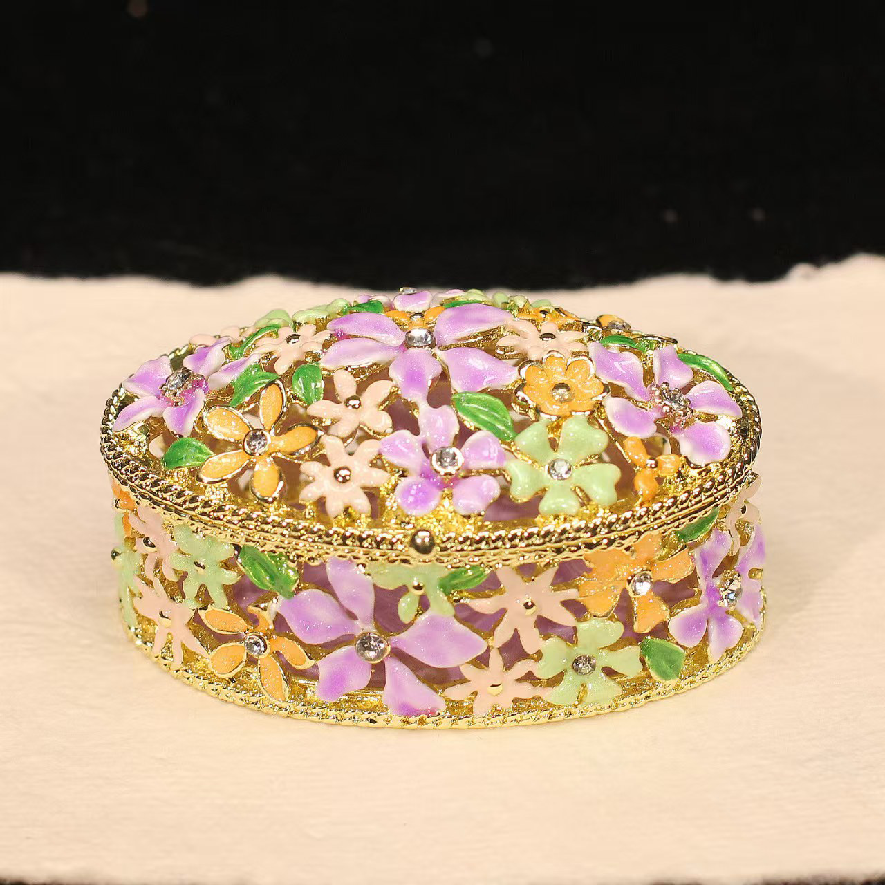 This exquisite Openwork Enamel Jewelry Box is a perfect blend of artistry and practical elegance. Masterfully crafted with **intricate openwork panels**, it showcases the rich, luminous beauty of **hand-applied enamel** in a palette of classic or contemporary hues. Each piece is designed not only as a functional storage solution but as a decorative object of refined beauty.