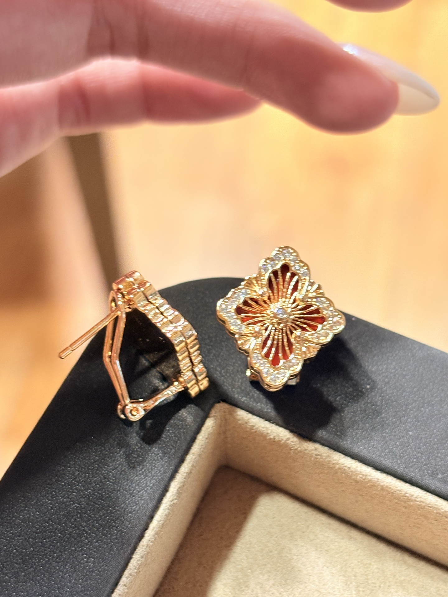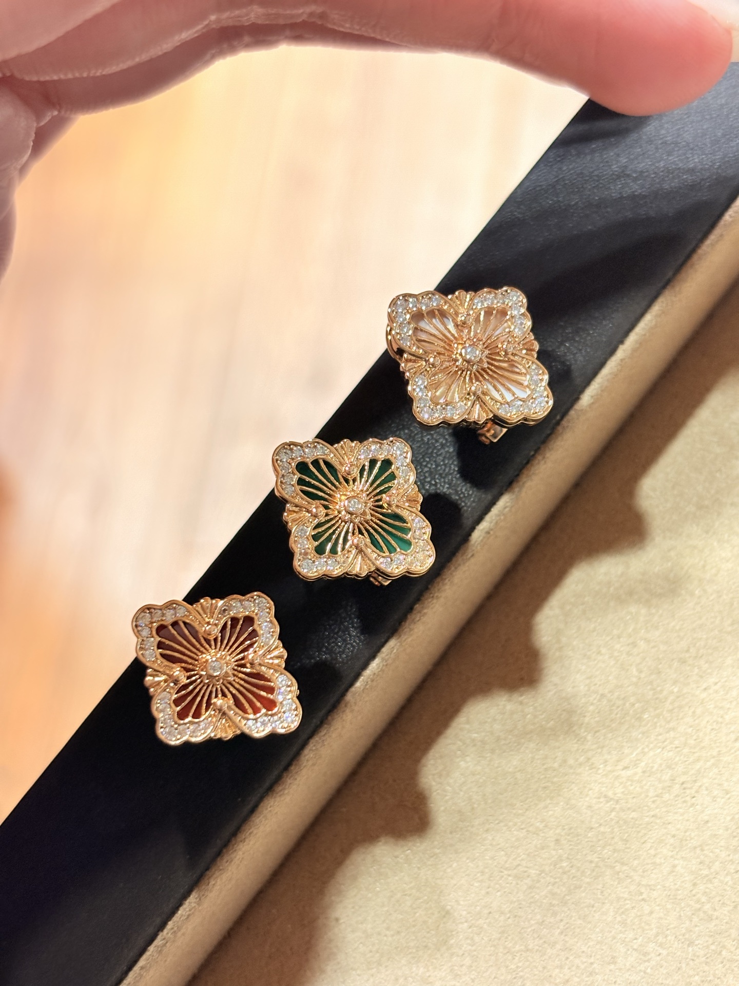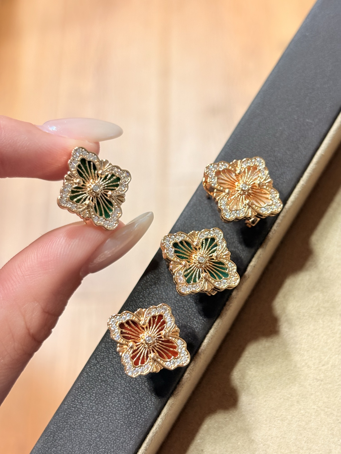 What truly sets these earrings apart is the thoughtful selection of genuine gemstones. Each clover leaf is accented with vibrant natural red agate and lush green chrysoprase. The deep, warm red of the agate symbolizes vitality and passion, while the refreshing green of the chrysoprase represents renewal and growth. Together, they create a stunning contrast that catches the light beautifully, adding a subtle yet captivating pop of color to any outfit.