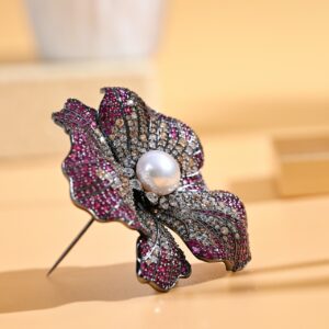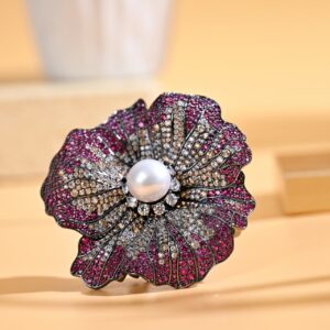 Witness the magnificent fusion of enduring opulence and poetic transformation in our **Gem-set Peony Brooch**, a masterpiece where the timeless “King of Flowers” meets the philosophical cycle of time. At the heart of this design blooms a lavish, full-peony, sculpted from **925 sterling silver gold-plated**. Its multitude of petals, layered in exquisite detail, are lavishly adorned with brilliant **cubic zirconia**, capturing the flower’s renowned lushness and creating a dazzling spectacle of light and texture. Nestled within this radiant bloom rests a lustrous **natural pearl**, symbolizing purity and adding a focal point of serene, organic beauty.