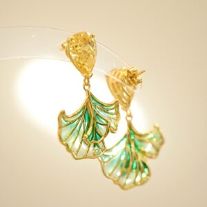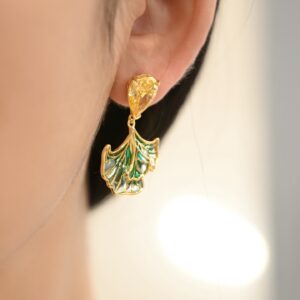 Capture the poetic essence of autumn with these enchanting Ginkgo Leaf Plique-à-jour Enamel Stud Earrings. Meticulously crafted in the shape of a graceful ginkgo leaf—an enduring symbol of autumn’s golden harvest and the ideal outcomes of love—each earring is a wearable ode to nature and devotion. Through the delicate art of Plique-à-jour, vibrant enamel colors are suspended without a metal backing, allowing light to pass through and illuminate each leaf with a soft, stained-glass glow that seems to hold sunlight within.