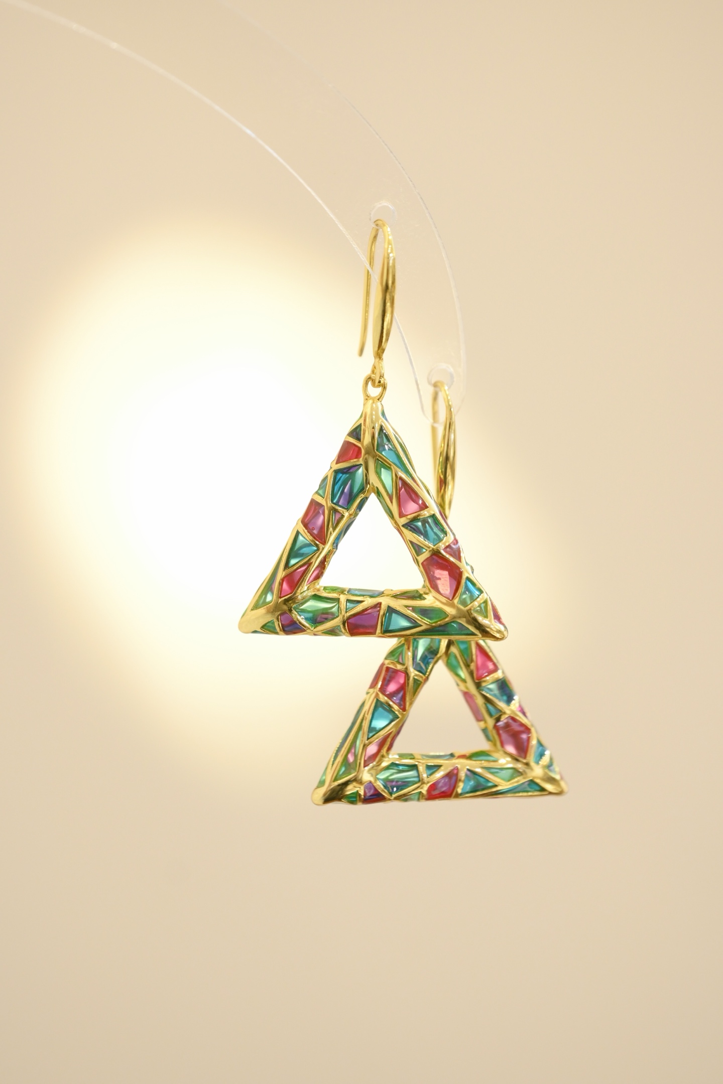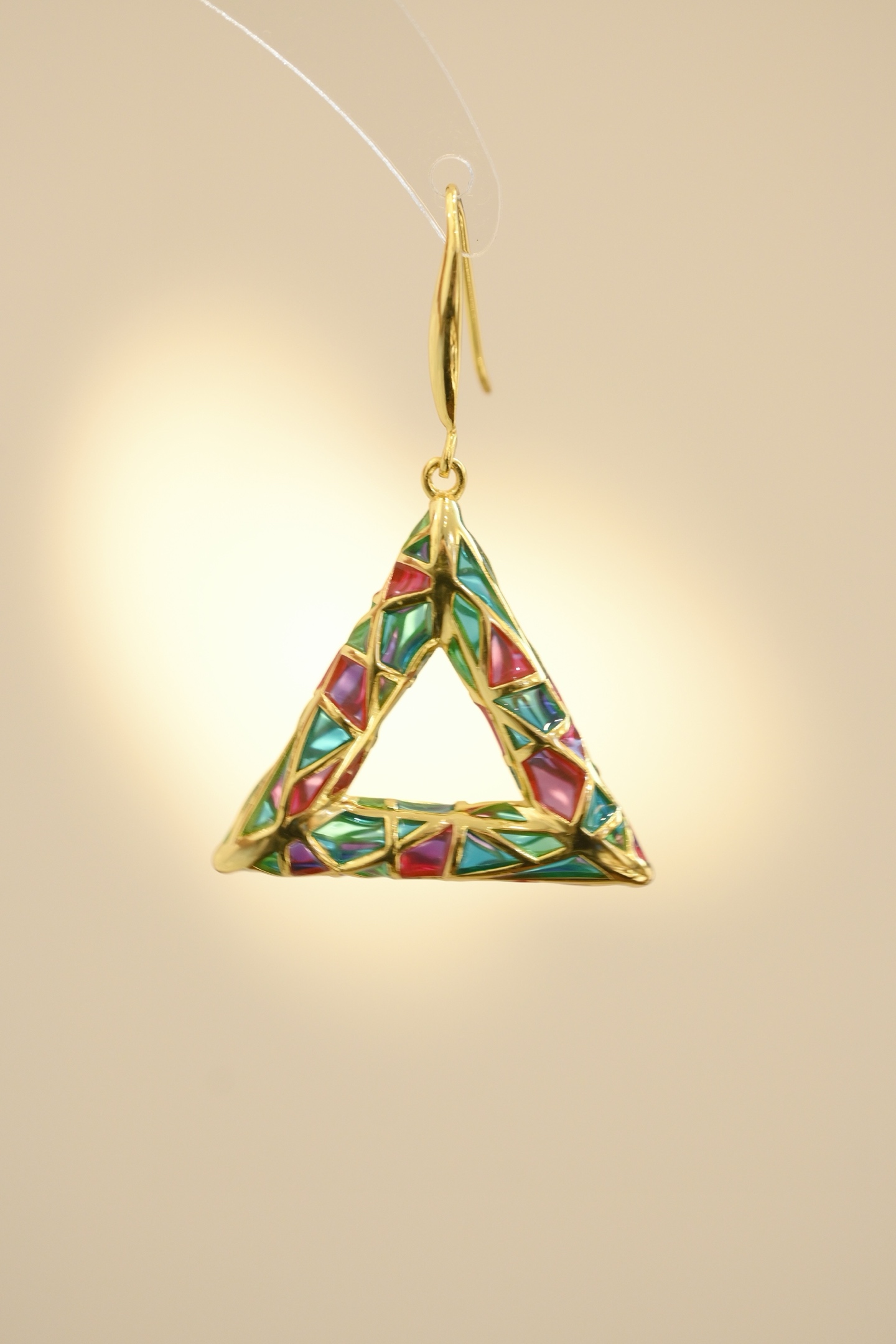 Triangular Plique-à-jour Enamel Hook Earrings