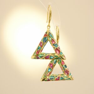 Crafted from premium **925 sterling silver with a lustrous gold plating**, these earrings offer a foundation of enduring quality and a touch of refined warmth. The **artisanal enamel** is carefully hand-applied in rich, contemporary hues, framed by the precise metallic edges of the triangular form. This marriage of a bold, modern shape makes for a truly eye-catching statement piece—designed to instantly draw attention and spark conversation.